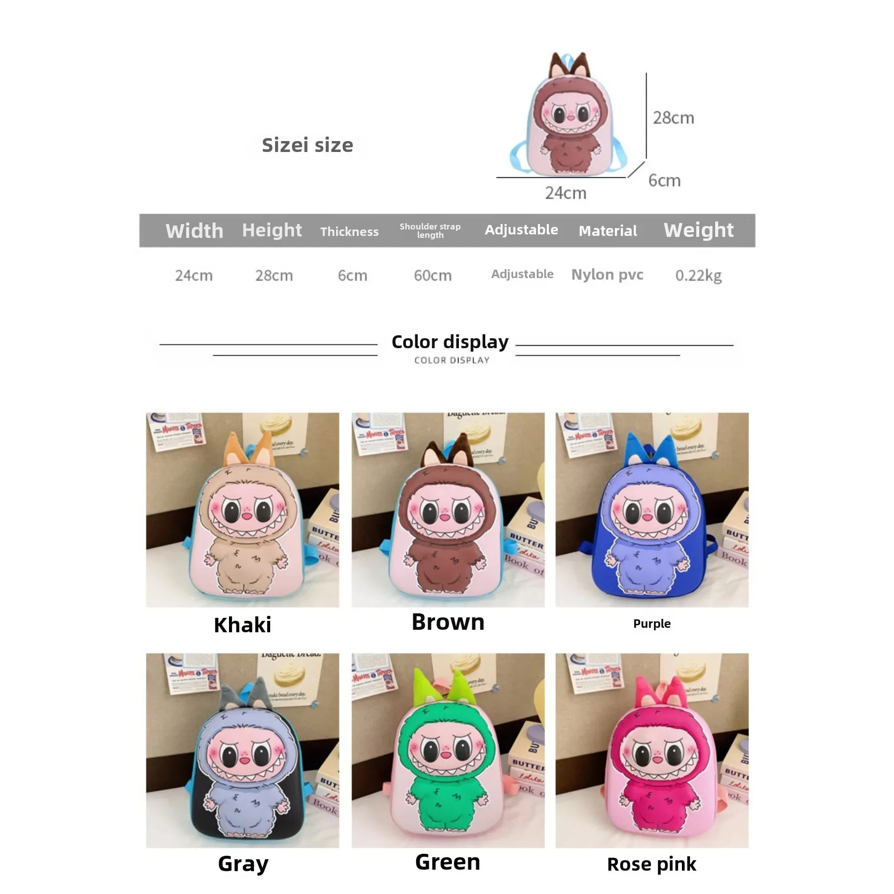 Labubu 11-Inch Hard Shell 3D Cartoon Schoolbag – Lightweight & Cute Backpack for Kindergarten & Young Pupils