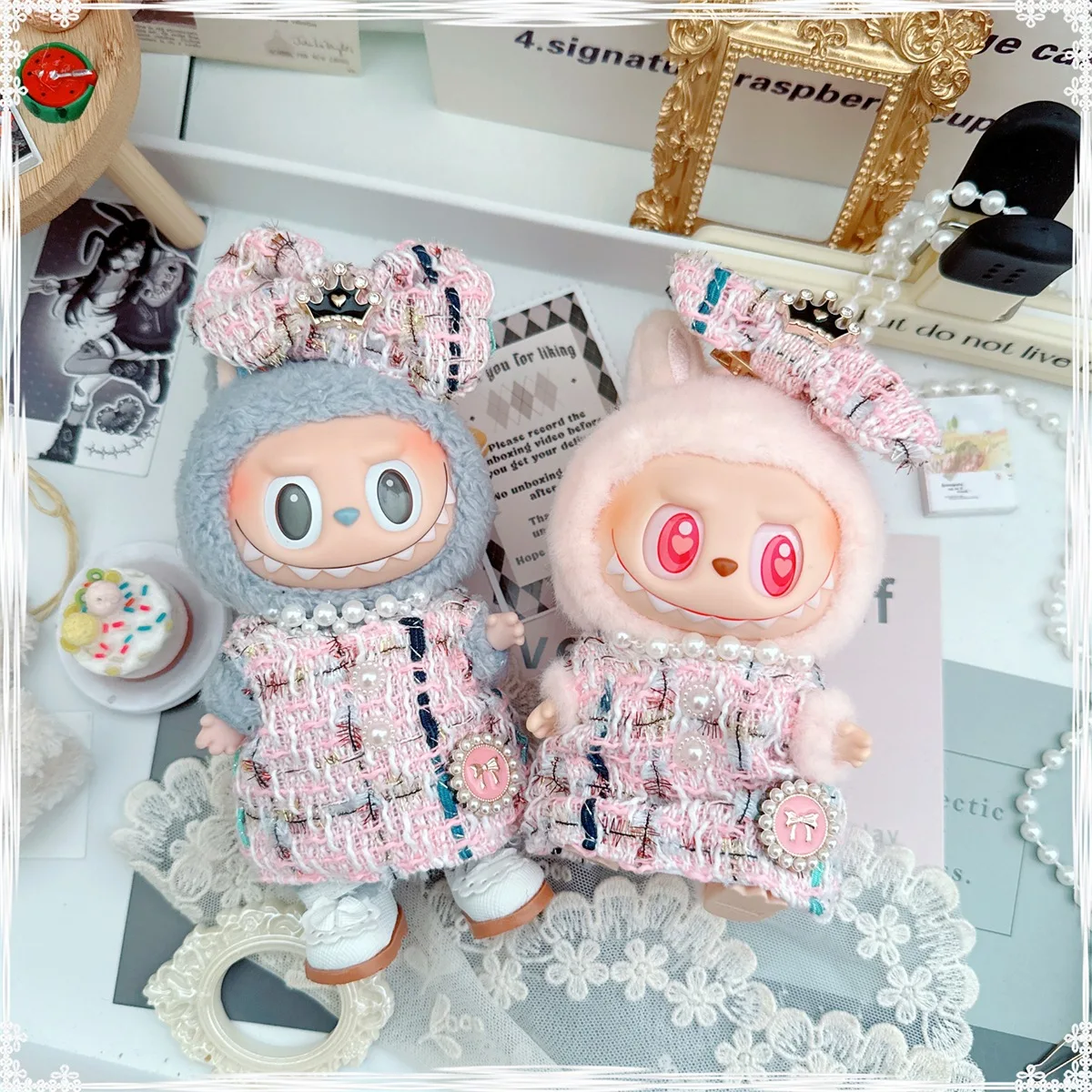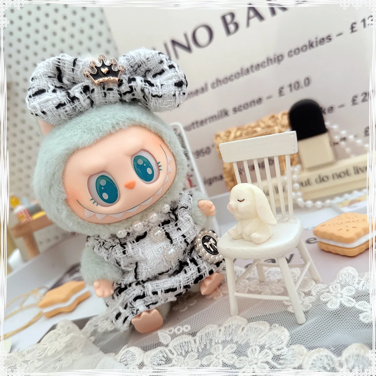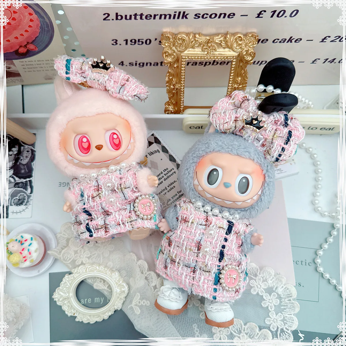Labubu 17cm Doll Clothes Set – Advanced Luxury Woolen Suit, Crossbody Bag & Princess Shoes Accessories