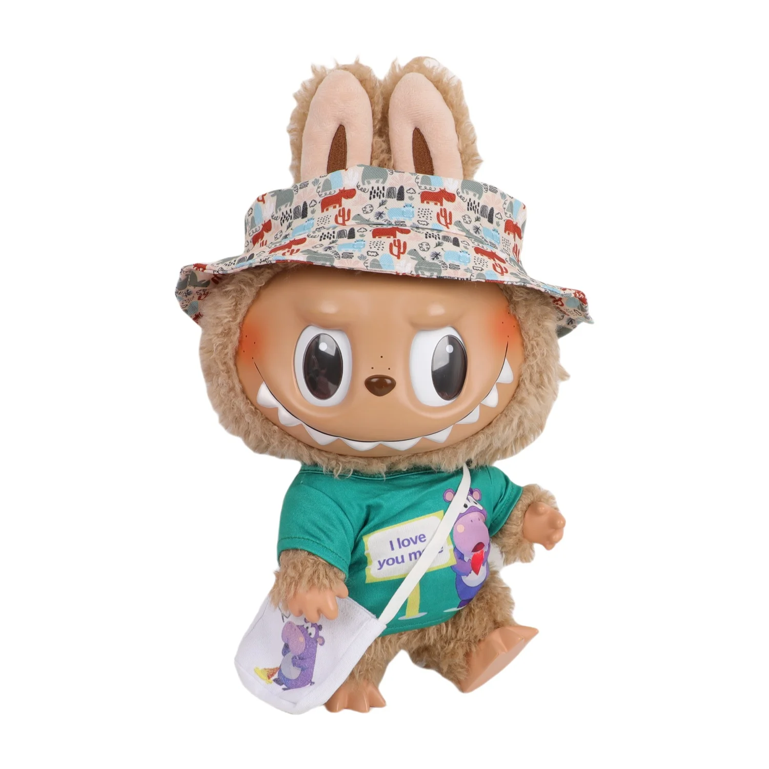 Labubu 38-40cm Big Doll Clothes Set – Cute Cartoon T-Shirt, Bag & Hat Outfit for V3 Cotton Toy, Perfect Gift