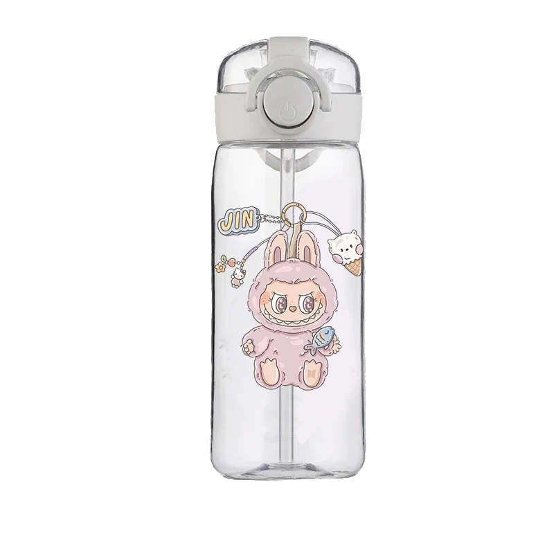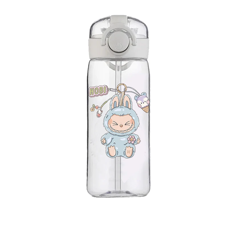 Labubu 400ML Kawaii Kids Straw Cup – Cute, Food-Grade Plastic Water Bottle for School & Summer, Anti-Drop Design