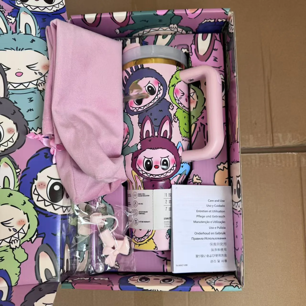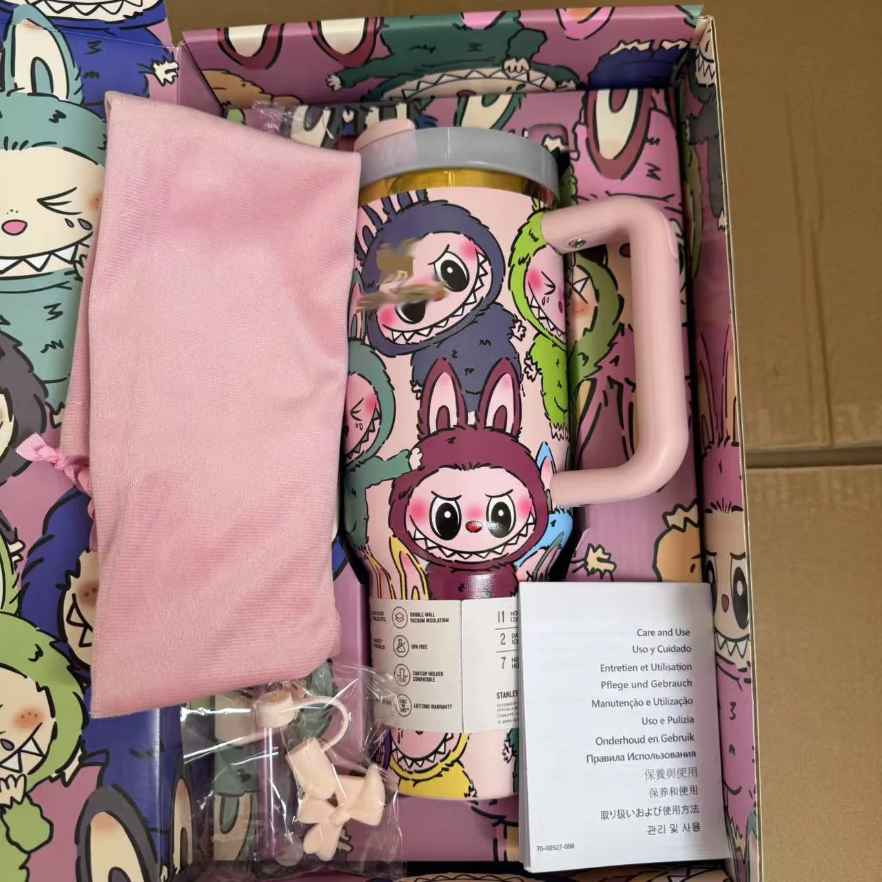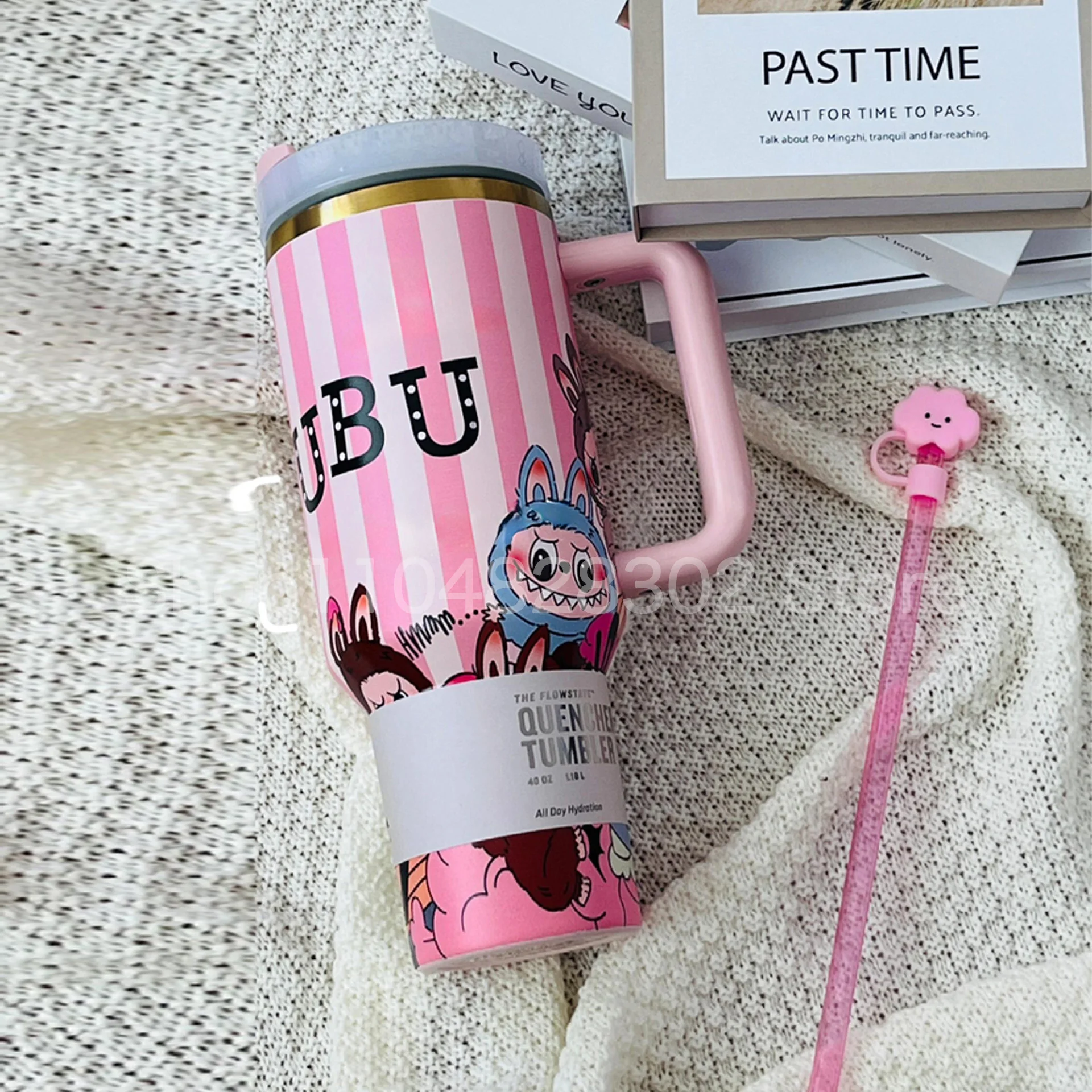 Labubu 40oz Stainless Steel Insulated Tumbler – Large Capacity Drum-Style Car Mug with Straw & Lid for Commuters & Travel