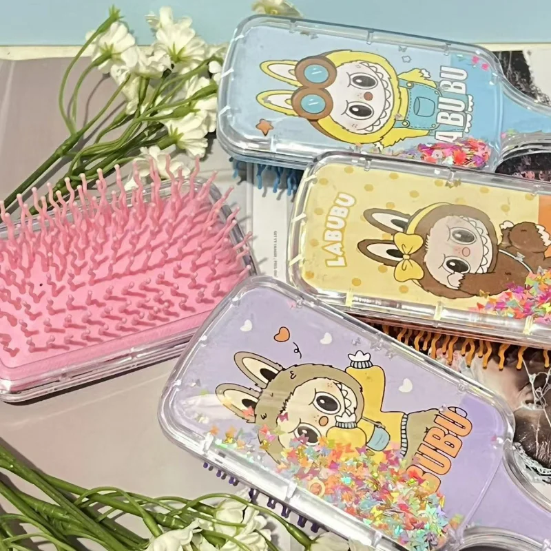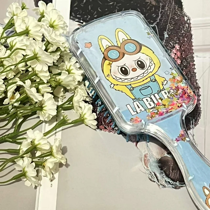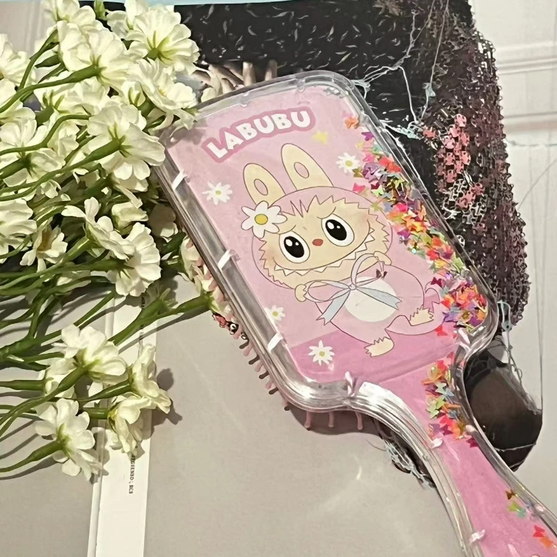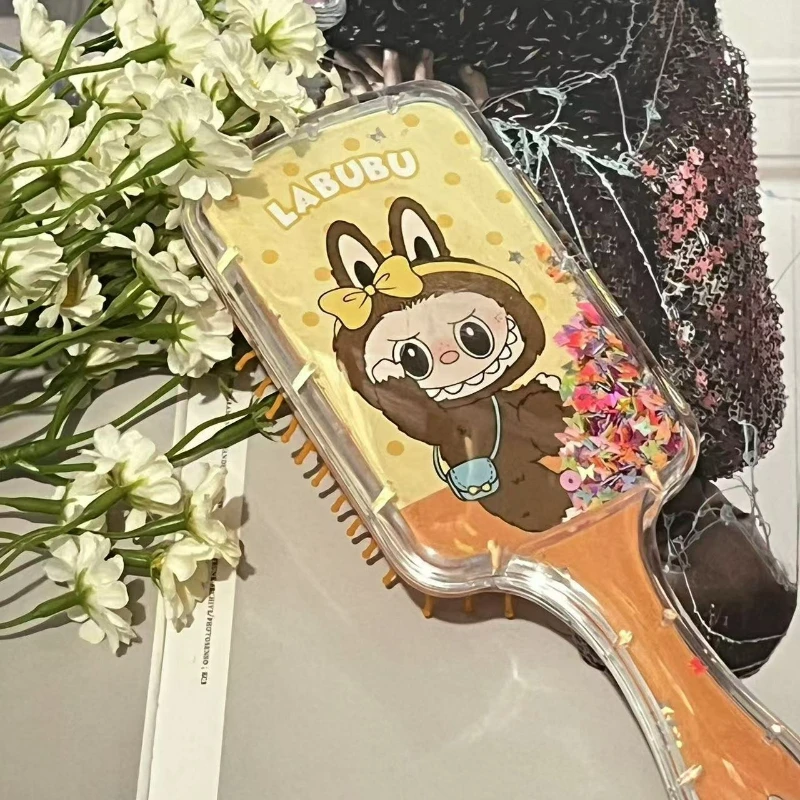 Labubu Anime Air Cushion Comb – Cute Cartoon Hairdressing Brush with Flowing Sand & Sequin Design for Massage & Styling